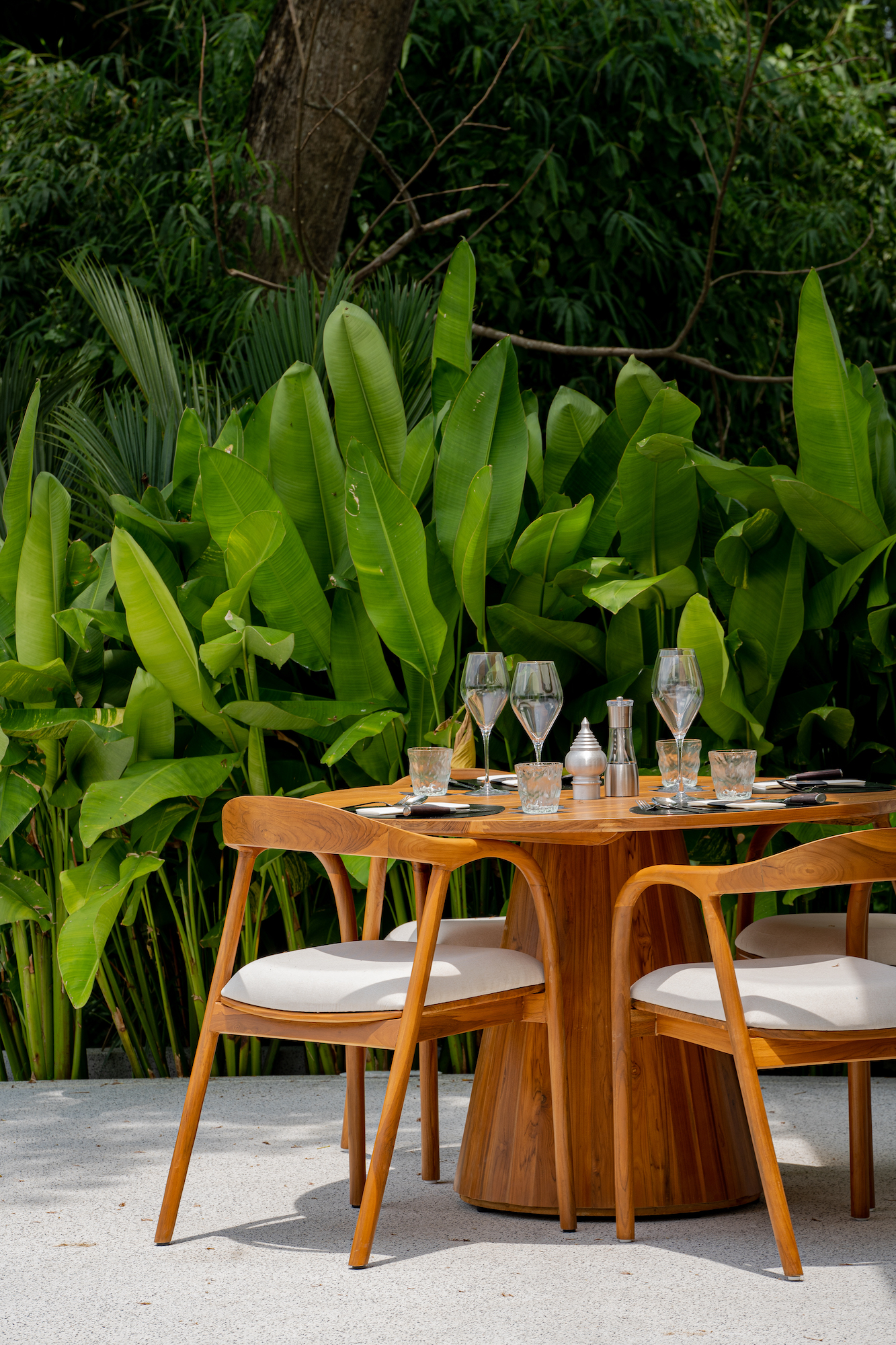 Relax in the lounge bar, the swimming pool or on the sunbeds in a universe where the sounds of giant bamboos and lounge music merge.