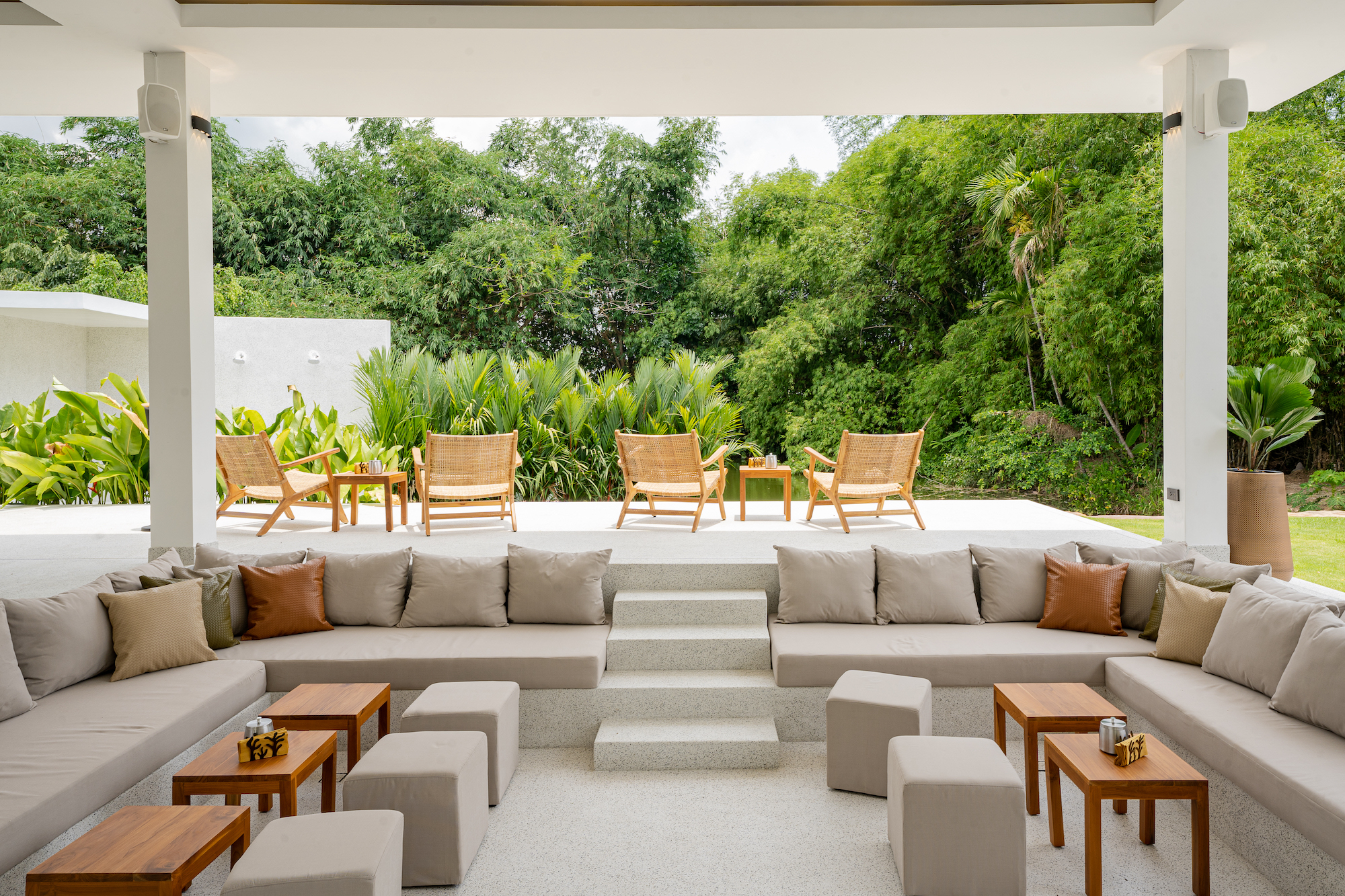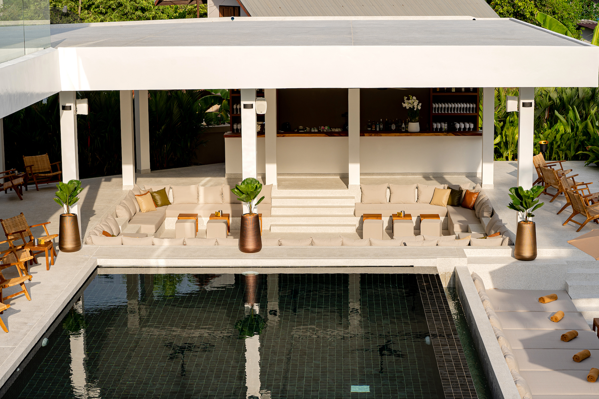 Relaxez-vous dans le lounge bar, la piscine ou sur les sunbeds dans un univers où fusionnent les sons des bambous géants et de la musique lounge.