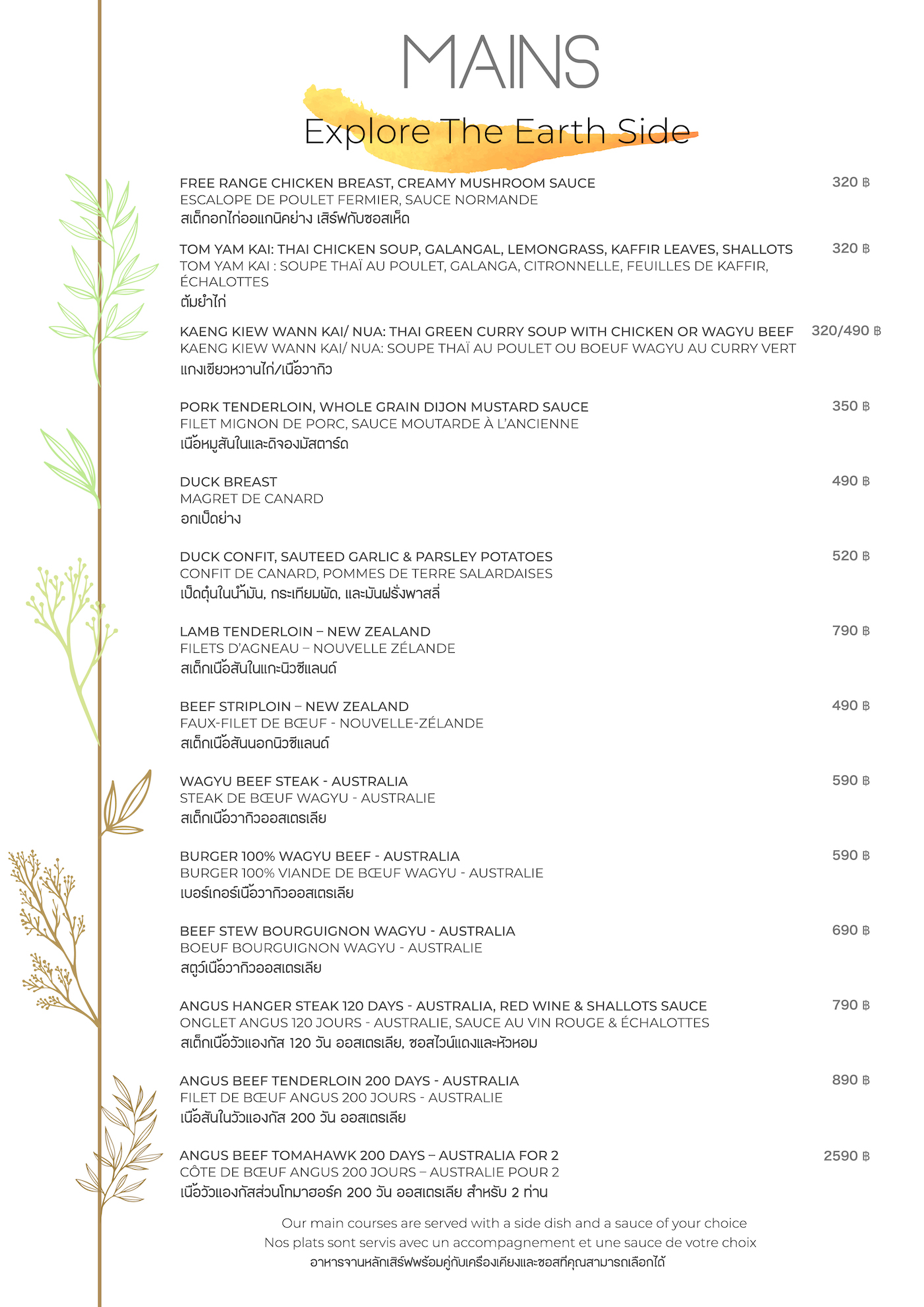 สลัดของเรามาจากฟาร์มไฮโดรโปนิกส์ในท้องถิ่น ไอศกรีมและซอร์เบต์ทำด้วยฝีมือของเราเอง